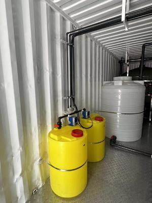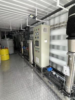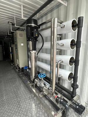 Raw water → raw water tank (user self-provided) → raw water pump → multi-media filter → activated carbon filter → precision filter → reverse osmosis device → pure water storage tank (user self-provided)
